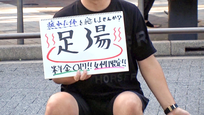 オフィス街有楽町で美人OLをターゲットにナンパ開始。暑くて立ち止まるのさえ嫌になる街中、知らない男に声を掛けられても話を聞いてくれる人などいないのでは?ということで用意したのは、自宅で足湯が出来るマシン。そこへさらに氷水を投入。キンキンに冷えた水に足を入れれば、暑さも、履き物による圧迫も忘れてリフレッシュできるオアシスが突如として街中に出現、声なんか掛けずとも向こうから人が寄って来るのだ!……とまではいかなかったけど、興味ありげにこちらに視線を向け、声を掛けたら寄って来てくれた美人OL風女性が。自分たちも限界が近づいてきてそろそろ冷房入ってるところ行かないとやばそうだったので、他にもいろんな健康グッズとか試せますよ気に入ったものあったら差し上げますーなんて言って誘ってホテルへ。最初は普通のマッサージ機を勧めつつしれっと電マを出してエッチなことを……と行こうとしましたが、ちょっと急ぎ過ぎたようで怪しまれ帰ろうとされる。何とか引き止め仕切り直し。今度は電マは封印、時間をかけて根気よくマッサージ機を当てていくことで、お尻に当てても警戒無し、おっぱいに当てても苦笑いはするものの抵抗無し、いい頃合いを見計らって手でのマッサージに移行。乳首やアソコ周り、感じやすい所を重点的に攻めていったらだんだん抵抗しなくなってきて、ついにはあれほど警戒していた電マを、フェラする最中も手放さずアソコに当て続けたり。騎乗位ではくねくねといやらしい腰つきを披露……この豹変振りに誰もが興奮すること間違いなし……?