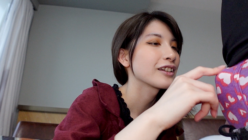 出会うと目鼻立ちがクッキリした印象の、フェロモンが色香立つ、大人の魅力を持った「すずね」さん。九州出身の某空港のカフェ店員、電話で話をした時はちょっと訛りのある可愛い感じのしゃべり方だったので20才でも納得。人に天然だねと言われるとか、おもしろい話し上手な人が好きだと話すも経験人数4人、初オナ19才、彼氏なし、プライベートなHはコロナ前、変わった経験も神社でしたくらいと経験値は低そう…。部屋で話していると、飽き性だとか、その理由を尋ねると、「たとえば言い寄ってくる男の「オッパイ」「お尻の穴」等々男の性感帯を開発し、男が満足し、そのテクニックの快感に目覚めて、彼女の虜になってきたらポイ捨てという、Sな感じの痴女っぽいチョー小悪魔な発言に驚き!!男の性感帯を感じさせ、興奮した男が発射しそうにねって「ヤメテ」と男に言わせるのが好きだとか…。インタビューしてても指でパンツの中のチ○コやアナル触りまくり「今日パンツ濡れてどうすんですか?」これ「リップサービス」ですよと真顔で挑発する彼女。「オチ○チン好きだね」と言うと、「お兄さんよりチ○コのほうが好きかもしれません、どうします?」「チ○コしか愛されてませんよ、寂しくないですか?」と話しで男心を翻弄させ手玉にとりてくる小悪魔な彼女!!男を動揺させ、その気にさせてしまう彼女。「女の子みたいになっちゃってますよ」「責めてくださいよ~」と彼女にペース握られて慌ててしまいます…。パンツを半脱ぎされ指でしごかれパクリ、ヤバイと思い離れてオナニーさせようとすると、チンチンしごかれながらオッパイを弄り、完全に翻弄されています。気分を変えて電マを持たせてオナニーさせるも足の指やチ○コ舐めてくる魔性の女状態、気分を変えてパンティーを脱がしてクンニしようとすると、「ダメ」とパンティーをずらしでクンニさせられ、感じてきたのか喘ぎ声が、「入れたい」というと「ダメです」「先ちょだけですよ」と完全に痴女に弄ばれている感じ!!バックで入れると腰を動かし責められ、こちらが感じてしまいヤバイので主導権を握りバックでガン突きすると「イキそうですよダメですよ」とこちらの気持ちがわかっているようで「ドキッ」とします。ベッドに移っても騎乗位で腰を振られ主導権を取られ、彼女の微妙な抜き差しとオッパイ責めに「イキそうなのは判ってますよ」「ダメチンチン」と挑発してきます…。「イキそうになってますよ」と腰をガンガン動かされてノックアウト寸前でヌクところが20才にしてベテラン痴女の様です。正上位で突いていると「もう少し上が感じます」と自分の気持ちイイポイントに導き、喘ぎ声を上げ感じてきますが、「イカせてくれないんですか?」とまたもや挑発されても限界なってきたので体位変え。横バックから騎乗位にされ、彼女にまたもや翻弄され爆発寸前で正上位に体位変え、こちらのペースで突いていると「気持ちイイ」「これ好き」と喘ぎながらマ○コを締め付けて来るので暴発間際にストップ。カメラを置きガンガン突くと限界に達し動きを止めると「あとちょっとだったのに」「早くイカせて~」と言われ、腰の限界まで降り続け「イキそう~」「もっとして~」と言うときに限界。気分を変えてバックでガン突きすると喘ぎ声も大きくなったので、正上位でガン突きすると膣を絞められ我慢出来ずに発射。優しい彼女のお掃除フェラで終了。魔性の女に翻弄されっぱなしでした。特典映像として魔性の女にもて遊ばれるフェラ手コキ動画有り。