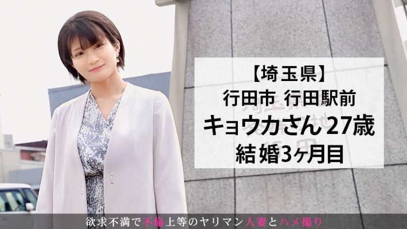 あらすじ:この作品は、色気溢れる甘美な淑女が魅せるリアルドキュメンタリー作品である。本日は埼玉県行田市にやってきました。待ち合わせた人妻は「キョウカ」さん(27歳)。結婚わずか3ヶ月の人妻が欲求不満でAVに出演。大人しそうな顔してますが超が付くほどのヤリマン痴女!とんでもない人妻が現れました...