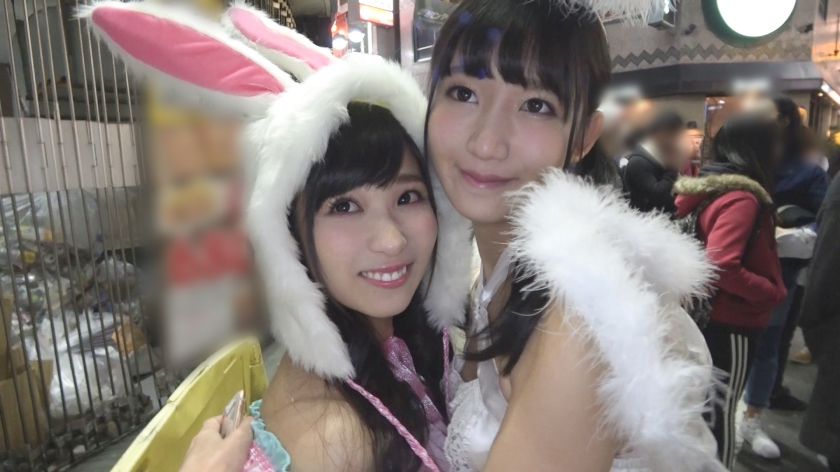 今年もこの季節がやってきた!街が浮かれ素人で溢れる日!際どいコスプレで街を練り歩く勘違い素人娘が簡単に釣れる釣れる!酒も飲ませてテンションあげれば即ハメできる!?天使とうさぎコスなこひな(22)&すず(20)自撮りしてた女子大生二人組にネット番組の取材ということで着いて来てもらう事に成功!若干怪しまれつつもノリと勢いでおっぱいとオマ○コ見せてもらってそのまま4P!友達のオマ○コにチ○ポがずっぽり入ってるところを見てお互い興奮しちゃって騎乗位で二人並んでガツガツ腰振って絶頂しまくる!