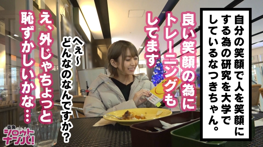 この企画は街行く女の子をガチでナンパし、リアルな素人女子のセックスを撮影、記録する企画である。今回は「御茶ノ水駅周辺」でリアルナンパ決行!早速見つけた超可愛い顔のスタイル抜群女子に声掛けするも「今、時間無いです」と一蹴。本当に急いでいるようだがこんな上玉を見逃すわけにはいかない!話の流れで「アルバイトしてるんですか?」「秋葉原とかでイベントコンパニオンしてます」との事。足早に行ってしまったが有力情報をゲットしこの日は終了。あんなに可愛い子を絶対逃さない!数日後「秋葉原駅周辺」でナンパ開始!駅周辺をフラフラと歩く。数分後ビラ配りをしているサンタの衣装を着た女の子を発見、声をかける。「一枚下さい!」「是非、良ければもらって下さい!」と良い雰囲気。少し話をしていると…「この前会いましたよね?」キターー!御茶ノ水で声掛けしたあの子だ!!「また会いましたね!何時にバイト終わるんですか?」「このビラを配り終えれば終わります!」という事で、配り終わるまで待ちました!!バイト終了後の彼女を突撃し一緒に食事に行く事に【なつきちゃん、21歳、大学3年生、イベントコンパニオン】元々アイドルをやっていて人を笑顔にする事に嬉しさを覚えた。今では大学で「自分の笑顔で人を笑顔にする」研究をしている程、笑顔に拘りを持っている様子。食べ終えたので、場所を変えて詳しく話を聞く事に。“最強の笑顔本”や、笑顔の練習などを手取り足取り教えてくれた。歯ブラシで笑顔の練習後、ナンパ師の指をチュポチュポ舐めながら笑顔の練習をする。「何か恥ずかしいですね…」と照れている様子。おもむろにズボンを脱ぎ勃起チ〇コを見せつける。「わーー何ですか急に!?」と照れまくり。だがツンツンと触り始め笑顔の練習というかフェラチオをし始める。「ンあ…大きい…」と積極的に優しくジュポジュポしゃぶる。その後、服を脱がすと真っ赤なエロい下着が露わに!スレンダーで最高の体つき!感度も良くドンドン感じる、なつきちゃん。手マン、電マで苛め抜いたらイキまくってもうヘロヘロ状態!だが、しっかりチ〇コは入れさせてもらいます!とナンパ師のドデカチ〇コをずっぷり挿入!「んん…あぁぁ」と悶える可愛い声を出す。こんな可愛い子とヤれるなんて最高です!正常位、立ちバック、騎乗位とあらゆる体位を堪能し最後は可愛いお顔に大量射精!しっかりお掃除フェラもしてもらいました♪
