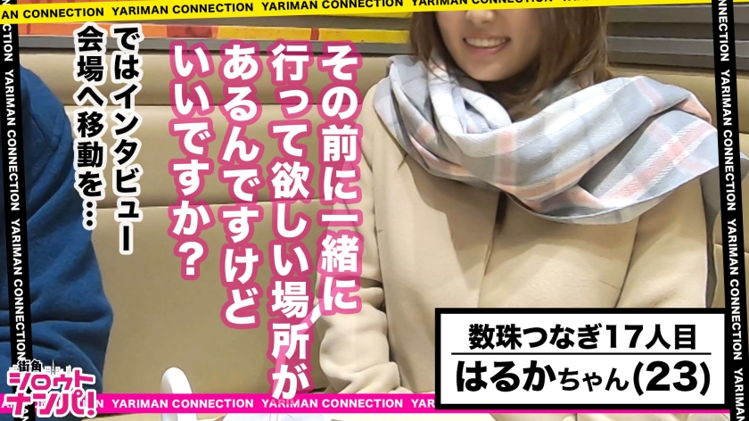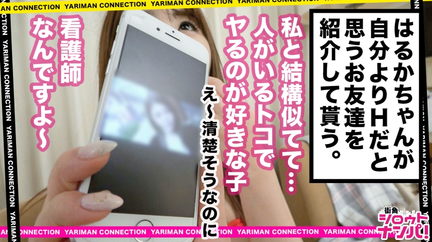 SNSからの出会いやストリートナンパだと時間がかかる上に、成功しないことが多い。そんな非効率なことをするなら、ヤリマンビッチな友達に「エロい子、紹介して!」とお願いしたほうが早いのではないか?その方がSEXできるはず(笑)。SEXしたあとにエロい女友達を紹介してもらい、最終的にはいつかエロ神様に合うのが目的の企画。前回のエロい娘あかねちゃんからの紹介で今回撮影に協力してくれたのは、服の上からでもラインが分かる美巨乳の持ち主はるかちゃん!待ち合わせ場所のカフェではるかちゃんと合流、店内は暖房がよくきいていて暑いくらいなのに何故かコートを脱がず完全防備姿のはるかちゃん。いつもどおり企画説明をしてさっさとホテルへ向かおうとすると「一緒に行きたい所があるんですけど」と突然彼女から要望が!?初めての出来事に戸惑うスタッフだがそこに行かないとホテルに行ってくれないと言うことだったのでとりあえず彼女についていくことに、彼女について行くと高級住宅街の一角に侵入!彼女の怪しい行動に不安になるスタッフだが彼女から「コートの下は亀甲縛りなんです」とびっくり発言が!そして徐にコートのボタン開けると全裸で亀甲縛りをしている彼女の姿が!啞然としているスタッフに「似合っていませんか?」問いかける彼女、そしてM字開脚をして座り込み食い込みパイパンおマ○コを我々に魅せつける!少しだけ触ってみるとおマ○コはジットリ濡れているではありませんか!ここでは色々とまずい(汗)のでとりあえずホテルへ移動!インタビューも程々にSEX開始!パイパン食い込む亀甲縛り姿の彼女をカーテン全開の窓に押し当て弄り回す!さっきにも増しておマ○コは濡れ、びしょびしょ状態に!もう我慢できんとフル勃起状態のチ○コを彼女の密壺に挿入!バックから激しくピストン!オモチャみたいに扱って欲しいという彼女の要望に応え首絞め、尻スパンキングしながら激柔G乳とパイパンおマ○コを犯しまくる!!ナニをされても歓喜の表情で卑猥に喘ぎ続ける想像以上のドM美女、はるかちゃんでした!