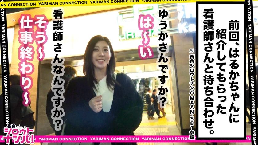 SNSからの出会いやストリートナンパだと時間がかかる上に、成功しないことが多い。そんな非効率なことをするなら、ヤリマンビッチな友達に「エロい子、紹介して!」とお願いしたほうが早いのではないか?その方がSEXできるはず(笑)。SEXしたあとにエロい女友達を紹介してもらい、最終的にはいつかエロ神様に合うのが目的の企画。前回のエロい娘はるかちゃんからの紹介で今回撮影に協力してくれたのは、都内の大学病院で働く現役の看護師ゆうかちゃん!お仕事終わりに来てくれた彼女為にディナーをご馳走しながらインタビューをすることに!お酒もお肉も男も大好きという肉食系のゆうかちゃん、豪快に飲みまくり即泥酔状態に!エロトークも軽快に話し野外SEXが好きとびっくり発言!理由を聞くと「やってはいけない場所でする方が興奮するから」と危ない性癖の持ち主だったことが発覚。最近、酔って全裸になってしまった体験談を聞き今日も脱いでほしいとお願いをしてみるあれよれよと服を脱ぎだし本当に全裸になってくれました!かなりご機嫌なようで全裸のままでヨガのポーズまでとり始めちゃいました(笑)もうなんでもできちゃいそうなのでお尻が強調されるヨガのポーズをしてもらいその勢いでお触り開始!プリプリ尻と激柔乳を揉み込んでいると彼女から微かな喘ぎ声が!私も責めたいとさっきまで彼女から思いもよらない、男を翻弄する淫靡でサディスティックな女に豹変!男のチ○コと乳首を卑猥に責めながら言葉責め、こちらも負けじとびしょびしょになったおマ○コを高速手マンで弄くりたおす!!本当にバレたらヤバいので大きな喘ぎ声をあげないよう歯を食いしばりながら快感に耐える彼女だったが、いざSEXとなるとデカチンから与えられる強烈な快感に耐えきれず喘ぎ声が漏れ始める。「本当に駄目」と連呼する彼女に容赦などするはずもなく奥の奥まで刺激するデカチンピストンで彼女を犯し、スリルと興奮でイキ狂わせる!!!