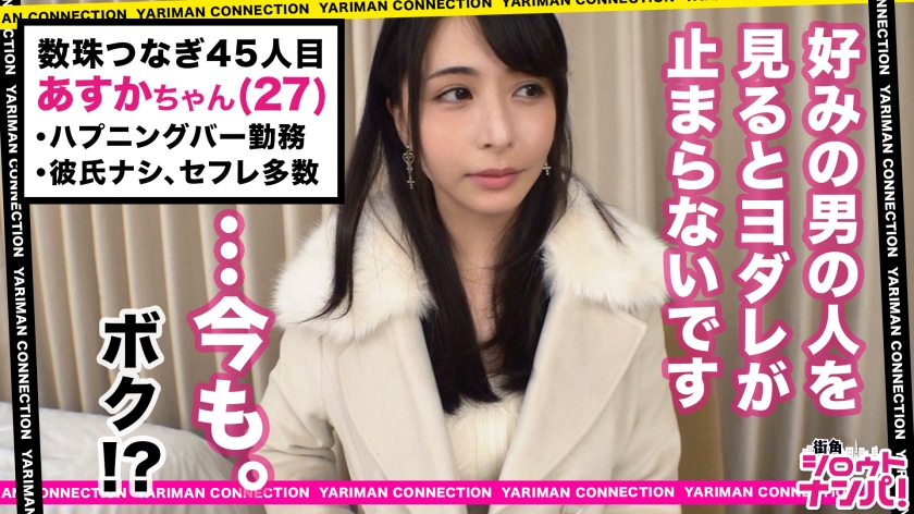 SNSからの出会いやストリートナンパだと時間がかかる上に、成功しないことが多い。そんな非効率なことをするなら、ヤリマンビッチな友達に「エロい子、紹介して!」とお願いしたほうが早いのではないか?その方がSEXできるはず(笑)。SEXしたあとにエロい女友達を紹介してもらい、最終的にはいつかエロ神様に合うのが目的の企画。前回のエロい娘みりなちゃんからの紹介で今回撮影に協力してくれたのはハプバー店員あすかちゃん!待ち合わせ場所で待っていると怪しい動きでこちらに近寄ってくる女の人が…恐る恐る尋ねてみるとやっぱりこの女性があすかちゃんでした。インタビューも今晩のお誘いの電話が鳴り止まない彼女、凄いに人気のようだ。早速ホテルへ向かいエロインタビュー開始!ひょんなことから顔騎しながらインタビューをすることに!オマ○コを男の顔面に擦り付けながらスタッフ全員がひいてしまうくらいの体験談話してくれるあすかちゃん!すると会話中ドンドン息を荒げながらおもらしのように潮を吹く彼女!どうやら気持ち良すぎて我慢できなかったようだ。他人と密着して興奮してきたのか行為ドンドンエロい方向に♪ベロチューの後めちゃくちゃ柔らかそうなオッパイとお尻を責めてあげるとあすかちゃんも完全Hモードに!!野獣のようにチ○コを咥え荒々しくしゃぶりまくるあすかちゃん!チ○コ咥えながら自らオマ○コを弄り愛液まき散らす!早くオマ○コにチ○コが欲しいのかお尻をいやらしく振りながらおねだり声をあげるあすかちゃん♪お望み通りギンギンに勃起したチ○コを挿入!SEX開始!あまりの激しさにイキ潮連発!洗面所→ベッドと場所変えながらもハードファックは続き悲鳴にも似た喘ぎ声をあげ最後は美巨乳にめがけて発射!!発射された後もチ○コを頬張りお掃除フェラまでしてくれたド変態あすかちゃんでした♪