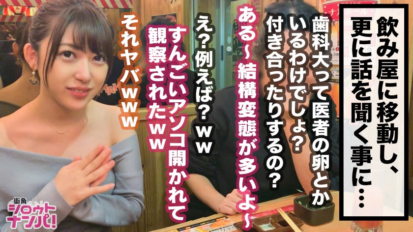 この企画は街行く女の子をガチでナンパし、リアルな素人女子のセックスを撮影、記録する企画である。今回のターゲットは、中野でマスク美人を取材する中で出会った、かれんちゃん21歳。どうやら合コン終わりで、お友達と二人で立ち話をしていたようです。マスク美人にマスクを外してもらうという企画を説明し、交渉しました。すると、二人ともあっさり快諾。マスクを外して貰えました。マスクの下は思った通りで、最高のマスク美女でした!めちゃくちゃ可愛いですww歯科衛生士の大学に通っているらしく、その影響でマスクを着用していたようです。その後、近くの居酒屋で取材を受けてもらう事にしました。現在大学三年生で、かれんちゃんが歯科衛生士を目指す理由は「給料が良くて、医者に出会えるから」・・・欲望(お金)に正直な女性、好きですよ。きっと今回の取材も謝礼が出るから快諾してくれたんでしょうね。そんなかれんちゃんが男性の医者について教えてくれました。「整形外科の人はチャラくて、内科の人はむっつりです」「もちろん私の偏見もありますけどね!」なんかその話、実体験ぽいですねw話題を少し掘り下げてみると、案の定過去に内科の男性と付き合っていたことが判明。相当変態さんだったようで、かれんちゃんのおマ●コを開いて見ることが好きだったようです。ちょっと、隣のお友達も引いてますよ!wwここでスタッフがトイレに席を立つと、かれんちゃんも付いてきました。そのまま同じ個室に入ってきて、突然フェラを開始!「昔の話してたら興奮してきちゃって・・・」え!この娘チ●コ舐めながらオナニーしてるよwwかれんちゃんのフェラテクが気持ち良すぎてそのまま口マ●コへ射精すると、満面の笑みでごっくんしてくれました。とんだど変態さんだ!何事も無かったかのように席に戻り、取材を続行します。「わたし、歯石を取るのが好きなんですよねぇ~」とかれんちゃんが話すので、ならやってもらいたいなとスタッフが乗ると、「道具もあるのでいいですよ!」なんと現役JDに歯石除去をしてもらう事になりました。お友達とはお別れをして、ホテルに到着。歯石除去中に胸を押し当てて誘惑してきました。正直期待してましたけどねw「歯石を取った後のキスは気持ちいんですよね」と話しながら突然のKISS!こちらからも、私服から覗かせていた大きなマシュマロおっぱいをしゃぶり、元彼にされていたというおマ●コくぱぁを体験させてもらいました。こんな絶景みたことない!綺麗なピンク色でした♪味見をしてみると、これまた絶品!見た目良し味良しの三ツ星マ●コでした!シックスナインやパイズリで、かれんちゃんの身体を堪能したところでバックから挿入。「奥すごいぃ」「それ気持ちい!もっとしてぇ!」騎乗位でも突き上げ、最後は正常位で高速ピストン!お口の中にいっぱい射精してあげました。