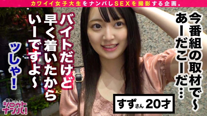 この企画は街行く女の子をガチでナンパし、リアルな素人女子のセックスを撮影、記録する企画である。今回のターゲットは都内の理系大学に通う2年生のスズちゃん(20)。丸顔でクリっとした目がめちゃくちゃ可愛い正統派黒髪美少女!!そんな見ためとは裏腹に実はオナクラでバイトしているらしい!!「実は男性のカラダに興味がありまして…どうやって体液が発射するのか気になって、今いろんな人の特徴を探っているんです!出たものである程度の食生活なんかもわかっちゃうんですよ!」と目を輝かせて話す天使爛漫でヒトのカラダに興味津々なスズちゃん!ここぞとばかりに「その研究に僕も協力させてもらえませんか?」と誘い出し、ホテルイン♪思春期のピチピチなカラダは色白でムッチムチ!ピンク乳首の癒やし系マシュマロおっぱいに張りのあるお尻も堪らない!!オナクラで鍛えられたテクがまたすごい!!全身を一生懸命に舐めまわし、大きな瞳で見つめながらペロペロと足指フェラまでしてくれるって最高かよ!!その上目遣いの可愛すぎるエモ顔だけでもヌケるレベル!!ぷるぷる新鮮なおっぱいで挟み込むパイズリも超気持ちいー!!楽しそうに、でもスイッチが入るとセックスに没頭!!自ら腰を動かして、やっぱりエッチが大好きなのが伝わってきて胸キュン!!フレッシュなカラダから弾け飛ぶ汗に愛液!感度も高まりまくりイキまくり!!こちらも我慢できずに、どっぴゅんと射精すれば嬉しそうに精子を分析するスズちゃん!お役に立てて何よりです♪笑