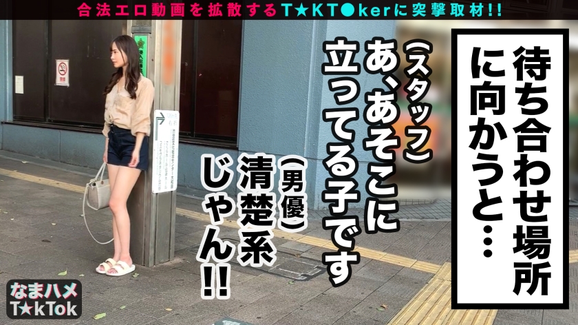 T☆kTokでエッチな動画を投稿するエロ可愛い女にDM(ダイレクトメッセージ)で連絡を取り、その場のノリでしれ~っとSEXまでしちゃおうという、次世代ナンパ企画!(1) 事前にスタッフが連絡を取り渋谷区桜丘町で待ち合わせた、今回のT☆kT●kerは「ナルミ」ちゃん(23歳)!今年、某有名企業に就職した新社会人の彼女はT☆kTokで垢BANスレスレのエロい動画を投稿してスリルを味わうことにハマっているようだ。(2)近くのカフェまで移動して彼女のことを詳しく聞いてみる。今まで複数でヤッたHの最大人数はなんと10人!しかしそれはノリでヤッただけで本当は二人での濃密なHの方が好きだそうだ。Hなお話をしながらお股モジモジ、股間を抑えるとってもスケベなナルミちゃん♪もう我慢ができないということでそのままホテIN決定! (3)早速ホテルの一室へ到着したのも束の間、パンツをグイグイ食い込ませてこちらにSEXアピールをするナルミちゃん♪もう凄い変態♪そんな彼女に飛びかかるが如くベロチュウから舌先で体中をねっとり弄られた彼女はもうすっかりトロケ顔!大好きなチ○ポを美味しそうにしゃぶり膣奥までせめ突かれる!ビショビショになったおマ○コにチ○ポ挿入すると水音を鳴らしながらハメ潮連発!騎乗位やバックでグイグイ突きまくりナルミちゃんの敏感マ○コにたっぷり中出し!(4)風呂場に移り乳首責め&足コキでイッた直後のチ○ポを強○勃起!太めチ○ポをズッポシ挿入、激ピストンでヤリまくりのイキまくり!(4)これで終わりかと思ったらまだまだヤリたりないと怒涛の3回戦突入!脚ピン激イキ、ムッツリ大暴走の濃密SEX、大量のハメ潮を吹きまくり!中出し3連発でおくる内容の濃すぎるエチエチ濃厚FUCKをお見逃しなく!!