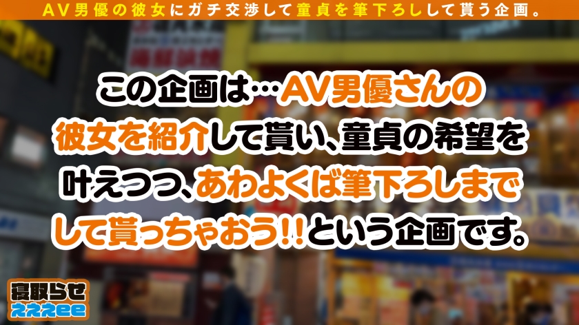 この企画はシロウト美女が彼氏の目の前で、見られながら童貞くんの筆おろしをしてあげるNTR ドキュメント!! モテまくりのイケメンにプライベートで遊んでいるシロウト美女を紹介してもらい、強引に女の家に乗り込み、筆おろしSEXさせちゃいます! その後は彼氏とラブラブSEXもしちゃう一度で二度おいしい新感覚寝取らせ企画です♪【1】今回のターゲットはイケメン男優「I」さんの彼女「ヒヨリ」ちゃん(20歳)。ピッチピチの女子大生で、Iさんとは付き合い始めて1ヶ月くらいだそう。【2】今回応募してくれた童貞君と合流後、Iさんとヒヨリちゃんのデート現場に乱入wIさんが彼女のお家へ行く許可を取ってくれたので早速みんなでレッツゴー!!【3】アニメ声がめちゃくちゃ可愛い今どきの女の子!天使の様に純粋で真面目だったヒヨリちゃんを、Iさんがセックス大好き変態女子に調教したらしいwそんな彼女にさっそく童貞君からの筆おろし交渉開始!よく状況がつかめていない様子の彼女にIさんが優しく説明。Iさんにベタ惚れ状態で「彼のお願いなら…」と要求を断れないヒヨリちゃん。少々強引だが初めての筆おろしSEXいざスタート!!低身長ながら意外と大きいおっぱいとのギャップに萌えるボディが魅力的!!抵抗しながらも調教済みのカラダは敏感に反応してしまう…!!童貞君にモチモチのおっぱいを揉まれるとハァハァと静かに悶える…「彼氏に感じてる姿なんて見られたくない!!だけど、押し寄せてくる快感には逆らえない…」そんな風に一生懸命、葛藤している姿が可愛らしくてきゅんきゅん!!彼氏の言いなりで従順なヒヨリちゃん、乳首舐めからの上目遣いねっとりフェラで童貞君にたっぷりご奉仕!!我慢が出来なくなった童貞君がそのまま彼女のおま○こへと生挿入!!「待って待って~」と拒みながらもピストンされるたびに可愛い声で喘ぎまくる!!キツキツま○こに締め付けられる初めての感覚に耐え切れずまさかの無許可中出し&2発目暴発!!困惑しながらも出された精子をゴックンして童貞君の夢まで叶えてくれた健気なヒヨリちゃん!!ご褒美に、今度は彼氏とラブラブSEX開始!!さっきの筆おろしの影響からかいつもより激しく愛し合い貪りあう2人!!敏感なカラダが更に敏感になってイクスピードがどんどん加速して…!!