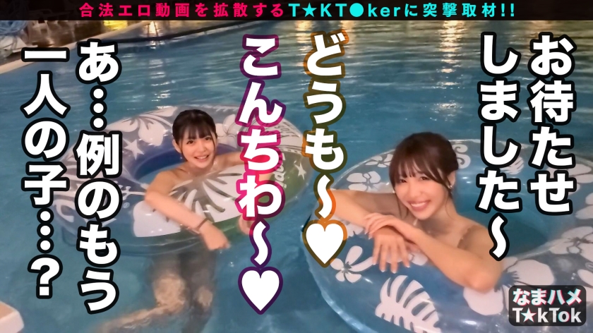 あらすじ:T☆kTokでエッチな動画を投稿するエロ可愛い女にDM(ダイレクトメッセージ)で連絡を取り、その場のノリでしれ~っとSEXまでしちゃおうという、次世代ナンパ企画!今回は美女T☆kT●ker が2人も登場するSP回!1人目はHINAちゃん(読者モデル)♪2人目はKARENちゃん(クラブDJ)♪お二人とも超ハイクラスな美人さん!ナイトプールで彼女達と合流後少しのインタビューを挟んだ後ノリのいい彼女達と向かう先は…プレイ内容:【第1部】:HINAちゃんがローターでクリを刺激しながらファラチオ、手コキ、ディープキス、フィニッシュはお口の中へ口内射精。【第2部】:ハーレム逆3P、クンニ、指マン、ディープキス、顔面騎乗、フェラチオ、HINAちゃんとKARENちゃん一緒にダブルフェラチオ、乳首責め、ダブル乳首責め、バック、中出し、立ちバック、対面騎乗位、スパイダー騎乗位、フィニッシュはHINAちゃんとKARENちゃんに両方中出し。【第3部】:男優2人のチ●ポを交互に手コキ&フェラチオ、電マ、バイブ、ディープキス、指マン潮吹き、立ちバック、中出し、1対1になりHINAちゃんは風呂場で立ちバック、対面立位、体面座位、KARENちゃんはハメ撮りで対面騎乗位、背面騎乗位、正常位、合流してオイルプレイ、フィニッシュはHINAちゃんとKARENちゃんに両方中出し。