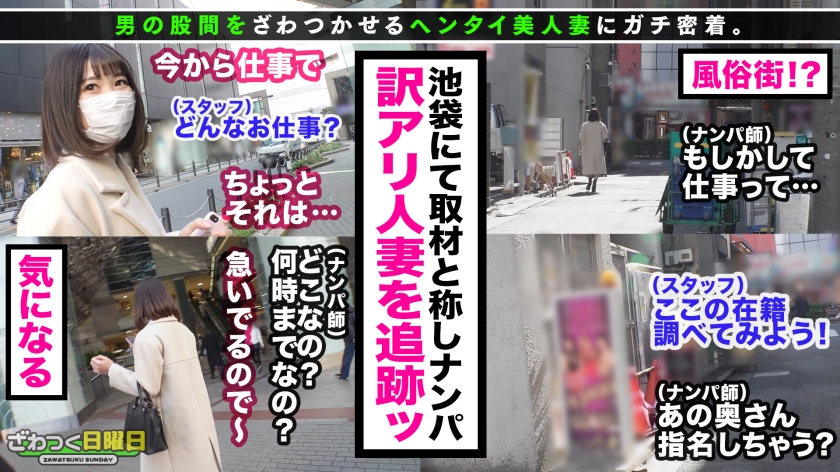 あらすじ:「刺激が欲しい」「ちょいムラ」「なんだかアソコがざわつく」そんな普通の主婦さん達の仮面に隠された性欲を剥き出しにしてあの手この手でヤリまくる何でもあり企画。今回のターゲットは池袋でナンパ中に出会ったレナさん(24)!押せばいけそうな雰囲気を感じ取りこっそり尾行するとなんとデリヘル店のキャストであることが判明!!すぐさまお店に電話し指名してプレイ決行!!そのまま謝礼金をちらつかせて取材からのセックス撮影!!口ではダメと言いつつびしょ濡れのマ○コ&一級品の騎乗位で男をヌキ搾り!!