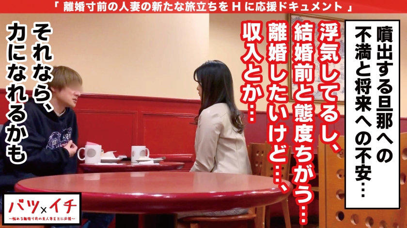 『既婚者合コン』とは、巷で流行している既婚者同士で行われる合コン。高額な参加費なのに、参加者多数の盛況ぶり…。この噂の現場『既婚者合コン』に潜入。結婚生活に不満を持つ離婚寸前の美人妻の自立をHに応援する企画、それが『バツイチ』。大人しいキレイな人がいるなと思って早速アタック開始!!間近で見れば際立つ美人度…、この人はガチで美人だ…心して口説かねば!!と、気合いを入れていけば、こんな落ち着いた大人っぽい美人さんなのに19歳!!未成年若妻さんでした。若気の至りで高校卒業して即入籍したものの、旦那の粗暴なところが目に付き「この結婚は間違いだった…」と気付き、今回の『既婚者合コン』に参加していました。こんな、しっかりした美人な超若妻が苦労していいはずがない!!あゆみさんの未来が明るくなるお手伝いをしなくてはと思い、後日下町デートに誘い出して距離を詰めてから交渉開始。「短い時間で、その美貌と若さを活かして…」「でも…」「この年齢(19歳)を活かさないと!!」と、説得しても曇った表情…。訳を聞けば、「旦那しか知らないんです…男の人…」と、顔を紅く染めて不安を吐露。この顔がむちゃくちゃ可愛い!!大丈夫、撮影では無理はしないのでと、スタジオにゴー!!緊張で震えるあゆみさん、その左薬指にはまだ指輪が…。しかしその緊張も男優の丁寧な愛撫にかかって絆されていきます…。またカラダが震えるも、これは女のスイッチが入った歓喜の震えでした!!どんどん広がるパンツの染みの原因は、なちゅヘアまんからの、おびただしい量の愛液でした!!人生二人目のチ○コを受け入れ準備ができた証拠!?ずずっと、ゆっくり丁寧に完全挿入すれば大人のように振る舞いをかなぐり捨て未成年のアクメ顔で感じまくる!!美少女の切ない表情で感じる人生決断のアヘ顔は必見です!!