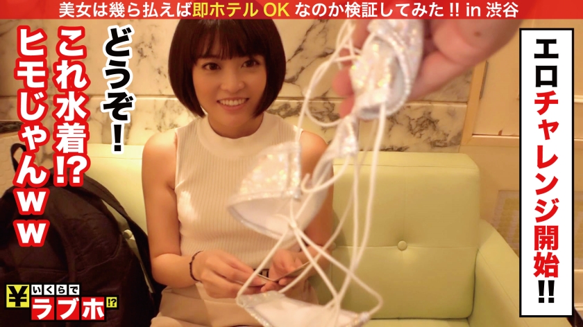 某You●uberよろしく体当たりガチ企画、「美女は幾ら払えば即ラブホテルOKなのか検証してみた!in 渋谷」開催!日本中、いや、今や世界中の美女が集まるビッグタウン、渋谷でガチナンパ。立ち姿からして美人のスレンダーさん発見!!歩く時もコアマッスルの強靭さを感じさせるモデルウォーク!!顔面確認せずに背後から声かけガチャナンパをトライ!!その結果は…、SSSR美女大当たり!!バレエ歴21年は伊達じゃない美人バレリーナまいさんゲット!!好奇心旺盛らしく、ラブホへ入室もけっこう乗り気ww「じゃあコレどうすか?」とバレエで鍛え上げたしなやか美ボディを極小水着でチェック!!引き締まったカラダに水着が食い込み映える映える!!しかも、脚を広げてバランスを…Y字どころではい「I字バランス」炸裂!!ますますエッチに食い込む水着!!そしてチクビもポロリ連発!!なんやかんやはしゃいでるまいさん、その理由は3年ぶりのラブホだからとのことでした!!今彼とはお家で致す派との事。ラブラブらしいんですが、たまには味変チ○コしないと飽きますよと力説してセクハラ開始!!I字に開いたのは美脚だけでなくマ○コもらしく濡れを直接指で確認!!しなやかバレリーナ筋肉は膣内の締まりにも生かされてますwwこれは限界突破の210°大開脚正常位で奥まで俺の白鳥の湖を大量注入するしかないでしょ!!