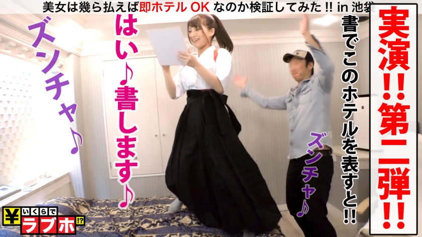 某You●uberよろしく体当たりガチ企画、「美女は幾ら払えば即ラブホテルOKなのか検証してみた!in池袋」開催!日本中、いや、今や世界中の美女が集まるビッグタウン、池袋でガチナンパ。池袋駅って世界の第二位の乗降者客数なんですよ!!そんなメガステーショには色んなタイプの美女が集まるのは至極当然!!今回は『一芸ある美女/美少女』をテーマにナンパですわ!!まあでもそんな女の子はレアですから…ナンパは難航!!真っ暗になって「今日はボウズで撤収かな…」と諦めかけていた時に、袴で踊る美少女を発見!!そして彼女の手には筆が、とりあえず何してるんですか!!と、突撃取材!!「ダンシング書道です♪」と、その開祖という彼女を密着取材ということでラブホへゴー!!まあとりあえずダンシング書道は置いといて…、我々が興味あるのは袴の奥にある女体オンリーです!!まずは警戒心?ガード!?を下げる為に筆を拝借してクビから耳元を攻めれば…、「そこ弱いんです…あん♥」と、まんざらでもない様子!!そこから一気にひん剥けば…予想以上の美尻そして食い込むTバック!!色んな準備万端!?なんと彼女のすずり(マ○コ)から透明な液体が…!!じゃあ、弘法筆を選ばずww俺のカチカチ黒太筆を使って貰いましょうww