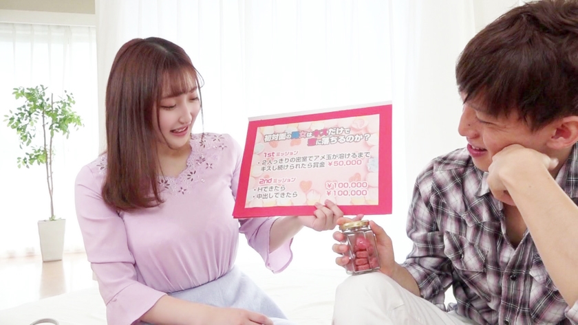 路上で声をかけられザックリした企画説明で密室に呼び出された初対面の男女…アメ玉が溶けるまでキスしてたら5万円の賞金と言うキッカケを与えられ恥ずかしがりつつもベロチューから徐々に理性崩壊ww1stミッションは余裕でクリアも盛り上がっちゃった2人はキスだけで終われないww異性を意識したご無沙汰な男女はカメラも忘れて快感に没頭!!バッキバキに反り返る肉棒に跨り一心不乱に腰振る姿は清楚な見た目とのギャップが炸裂…企画無関係に最後までハメまくりグラマラスボディに中○しww
