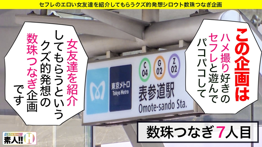 素人娘と遊んでパコってHな友達も紹介してもらう企画。今回のお友達はエステティシャンのわかちゃん。洋服の上から盛り上がる胸元が気になります。そんなわかちゃんはさみしがり屋で男性と一緒にいるときはカラダや腕にくっつくそうです。料理が好きで得意料理は和風オムライスで調理方法を詳しく教えてくれました。エステのお店に男性が来店しないのでもやもやしてる顔がみたいそうです。もやもやしている顔がかわいいと思っちゃうんだって。休みの日は映画を見るそうで涙腺が緩む映画を見るとすぐに泣いちゃうわかちゃんの男性の好みはタイプは男らしく甘えさしてくれる人で年上なのにそんなことしてるのがかわいいとギャップのある人が好きだそうです。そんなわかちゃんは男性に責めたいし責められたい&どっちもしたいタイプで「相手の気持ちいい顔を見て興奮したいけどいじめられたい」と言われたらムラムラしてチ○ポをさわられると「硬かった」と言うわかちゃん。スカ-トから見えるパンツを見たら我慢出来ず濃厚に舌を絡めてDキス、興奮したわかちゃんは勃起した乳首やチ○コをさわると今度は大きなおっぱいで誘惑するわかちゃんのエストロゲンが爆発!カウパー汁まみれのチ○コを見られたのでわかちゃんのマ○コを見たらマン汁が垂れてました。もうわかちゃんイヤらして!!クリをいじり指をマ○コにいれると「あっあっ、そうぅ、気持ちいぃ、イクッ~」と昇天寸前のわかちゃんが今度はガマン汁まみれのチ○ポを亀頭から竿玉をジュルジュル舐めると「気持ちいい?」とエロい言葉で言うわかちゃんの胸の谷間にチ○ポをいれてパイズリすると「イレたい?」と誘惑。マン汁まみれのマ○コに勃起チ○コをいれると「気持ちぃぃ、嬉しいぃ」、「スゴイ、イクッ、イィ」と悶えるわかちゃんを騎乗位で突くと「奥まではいってる、気持ちいぃ」とオッパイブルンブルン揺らし、腰も上下に激しく揺らし&バックで猛烈に突くと「イクッイクッ、ア~、ア~」と喘いでいると男たちがSEXルームに乱入。立ちバックで後ろから突かれ、上のお口でフェラしているわかちゃんは興奮状態!!!騎乗位で下から突かれると「イクッ、イクッ、ヤバいよ、イィッ、オマンコ最高」と言うわかちゃんのマ○コにザー汁中出し!!!! さらに狭膣にチ○ポをいれると「奥好き、あっあっ~」と言いながらわかちゃんは気持ちよすぎて目から涙が流れてました。『わかちゃん、気持ちよかった~~』再びわかちゃんのマ○コにザー汁中出し2連発。そしてSEXルームでの乱交はいつまでも続きました。わかちゃんは「まだイケるるよ!」と吠えていました。性欲がつきないわかちゃんに友達を紹介してもらうと「綺麗でかわいくてめっちゃエロい人」だと言ってくれました。楽しみ!!!!!次はどんなぐうかわでやばい女の子が来るのかな!?