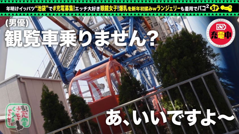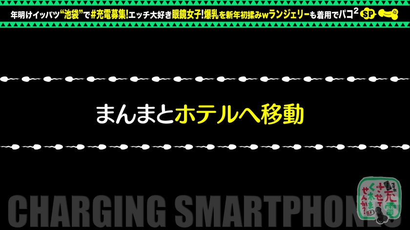 「充電させてくれませんか?」と優しい美女にお願いして、スマホを充電させてもらいつつエッチな充電もしちゃうスケベ企画。今回充電器を貸してくれた女神は、さえこちゃん。バンドのグッズを買いに来ていたらしく、その帰りにわざわざ助けに来てくれました!充電中に観覧車デートをしていると、高身長男子が好みといいう情報をGET!(スタッフに180超えが居るのでワンチャン狙えそう!)更に!最近彼氏と分かれているのでアッチはご無沙汰とのこと。これは好機!ホテルへGOしちゃいますw着いてすぐにセックス開始!ずーっと気になっていた巨乳をモミモミwこの子、おっぱいだけじゃなくてお尻も凄いです。エロい肉付きにキレイなアナルも堪能♪バイブでマ●コを責めると潮を吹いちゃいましたw敏感で良いですねぇ!カメラもビシャビシャですwイラマ気味のぐっぽり喉奥フェラ!パイズリとのコンボで射精寸前wwwソファで挿入!立ちバックからの着席後背位!後ろからガンガン突いて、我慢できず中出ししちゃいました!!汗と精子で汚れちゃったのでお風呂へ移動。お風呂でも泡まみれ挿入!お風呂から上がり、真っ赤なランジェリーにコスチュームチェンジ!二回戦突入です!ベッドで身体を仰け反らせ、震わせながらイッちゃってますwww正常位でピストン加速!お口にザーメン放出!!すけべ眼鏡女子とのセックス最高っすねぇ!!