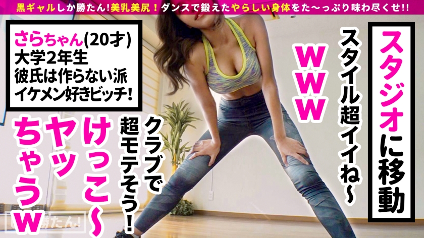 インタビューを通して、【○○しか勝たん!!】とともに素性やエッチな体験談を掘り下げるという企画です!ヤリマンな本性を全開にさらけ出してもらいつつ、じっくりと女の子の美BODYを味わっちゃいましょう♪渋谷で買い物中の黒ギャル発見!服を着ていてもスタイルの良さが分かるさらちゃん。大学生さんです。早速質問してみると、「ダンスしか勝たん!!」とのことでダンススタジオで披露してもらう流れになりましたwウェアに着替えてもらい、セクシーな切れのあるダンスを見せてもらいました。腰使いが非常にエッチです!インタビューを進めると結構エッチな話題を話してくれるので、ヤレそうな雰囲気に!ホテルへ連れて行っちゃいます!本人曰くEかFカップの巨乳を揉みしだき、ダンス中も気になっていたどエロい尻にむしゃぶりつきます!ダンスには不要らしくパイパン仕様!クンニし甲斐がありますねぇ!イラマ気味のディープフェラをしてもらい準備万端!ソファや階段、場所を構わず腰を打ち付けます!突くたび揺れるおっぱいが最高!!もちろん中出し&2回戦!!水着+オイルでテカテカセックス!さらちゃん自ら腰をグリグリ振ってきますwwwそして正常位でラストピストン!2回目の中出しをしちゃいましたが、快感には抗えなかったようで喜んでくれましたw